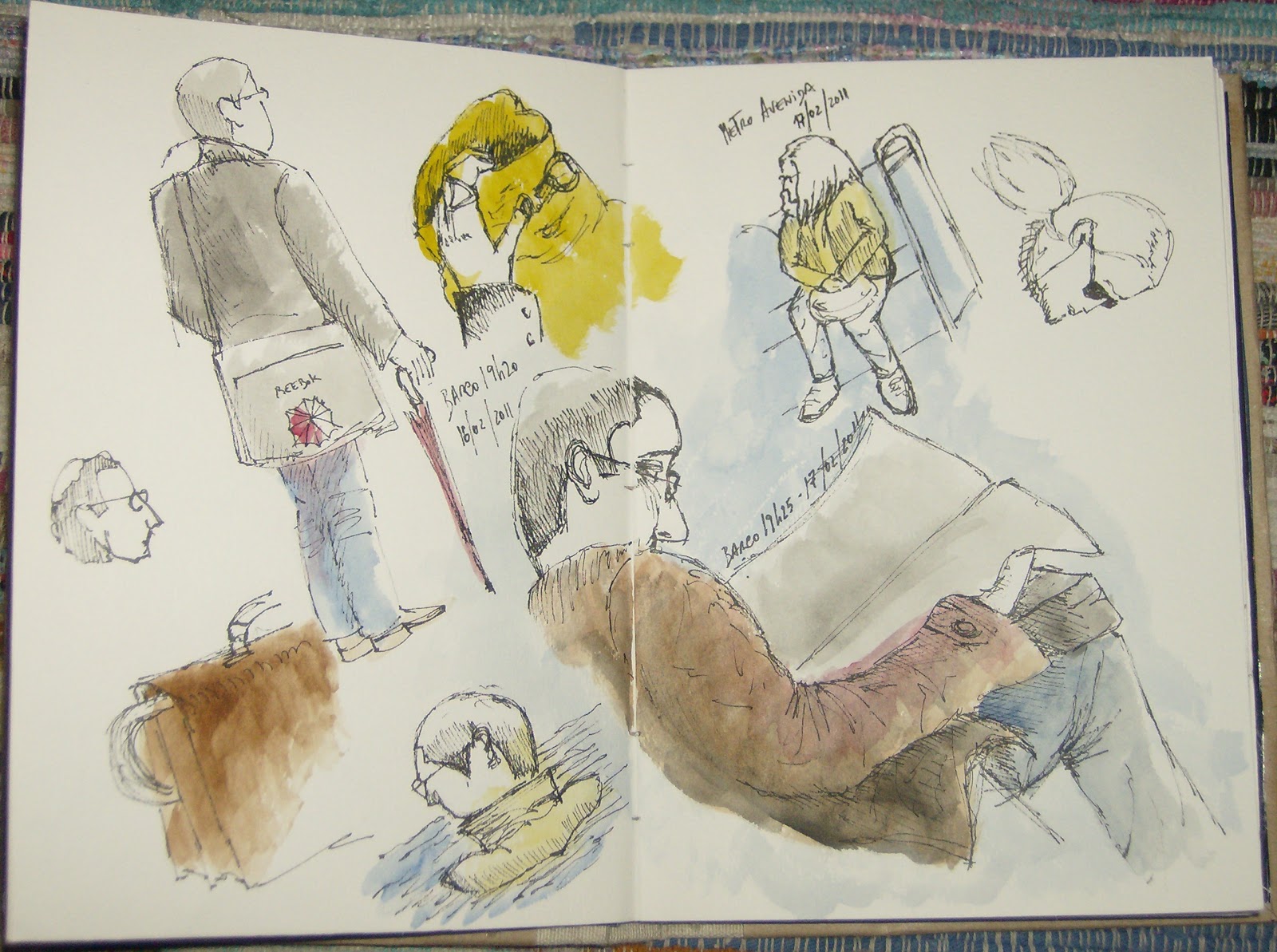 Aproveito as pausas das viagens para observar, ouvir e desenhar o que se passa à volta. Precisamos de momentos de relaxamento mental.