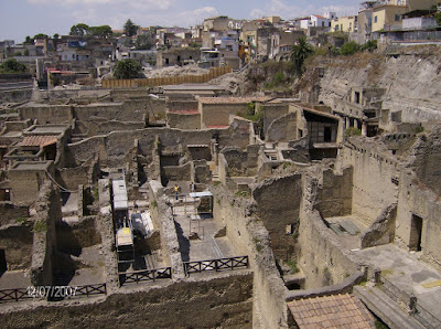 Herculano teve uma sorte diferente de Pompeia. A lava e as lamas queimaram a cidade. Pompeia por outro lado foi subterrada pelas cinzas do Vesúvio que a deixaram com mais vestígios, inclusive corpos humanos. Não sendo tão conhecida como Pompeia, esta cidade vale a pena visitar em complemento com a volta pela cratera do vulcão - e claro a grande cidade de Nápoles que merece uns dias e um livro para a descrever. "